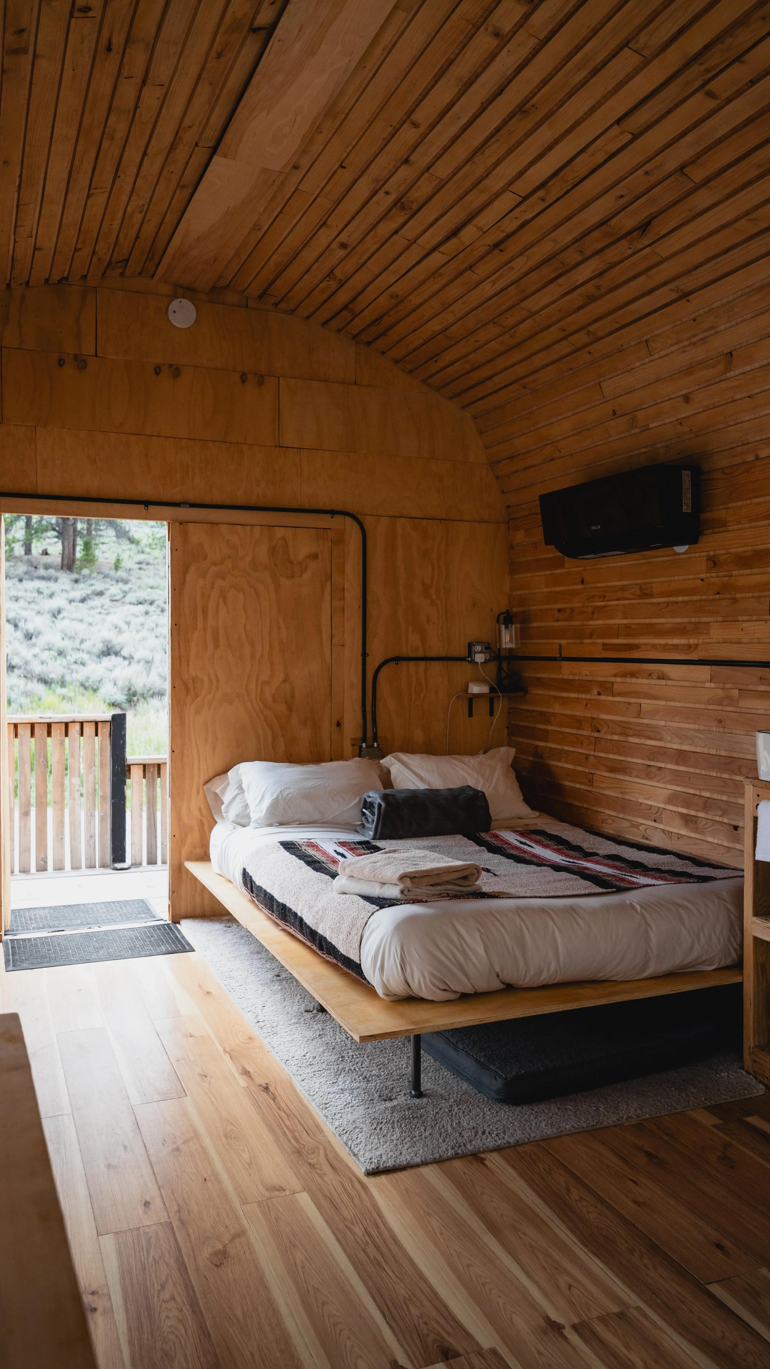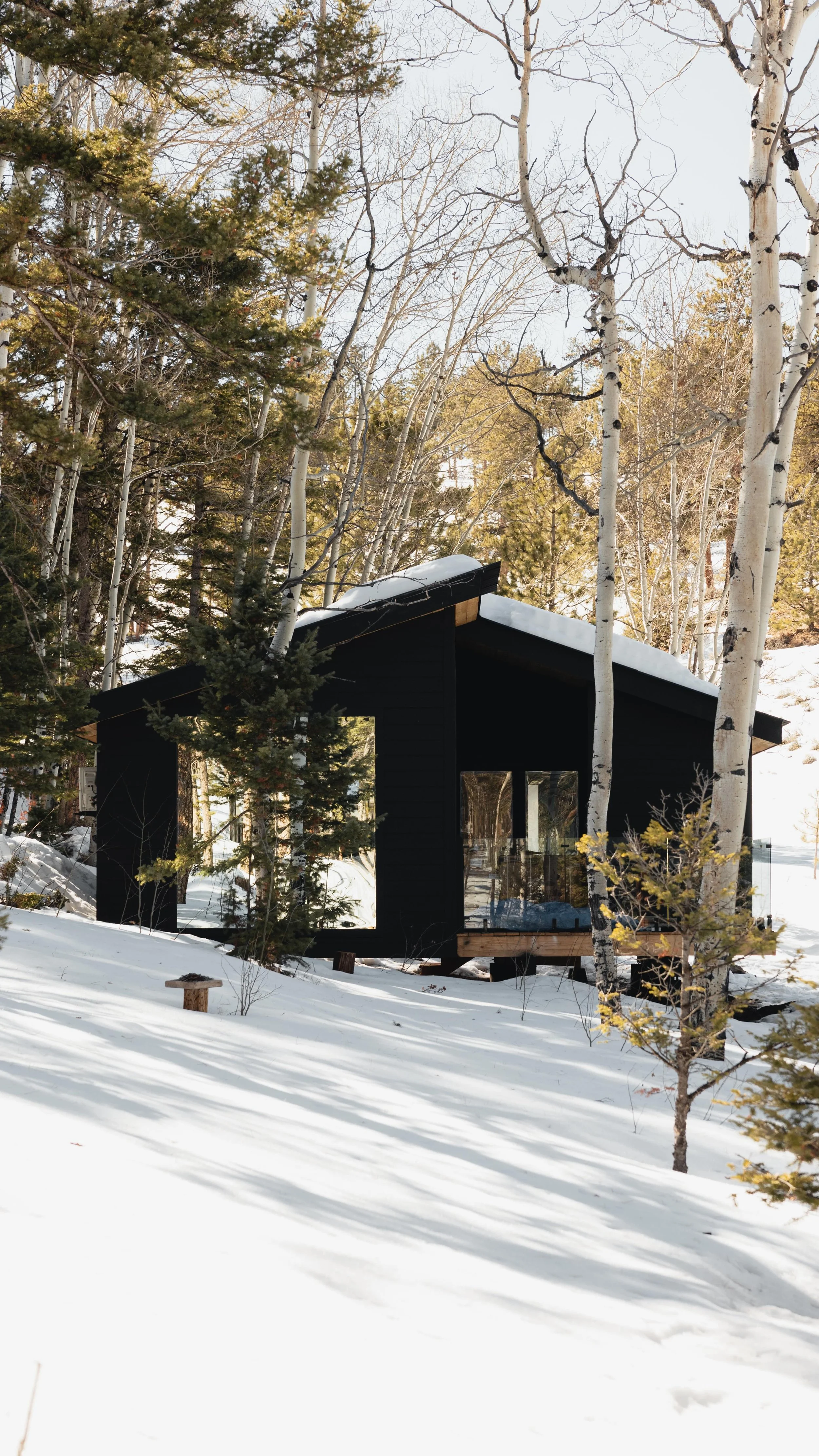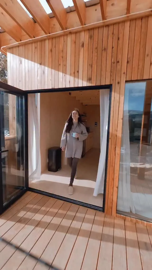 All cabins are custom architecturally designed and built for the space they sit in. In all cabins, we aim to do 3 things to bring the outside in: