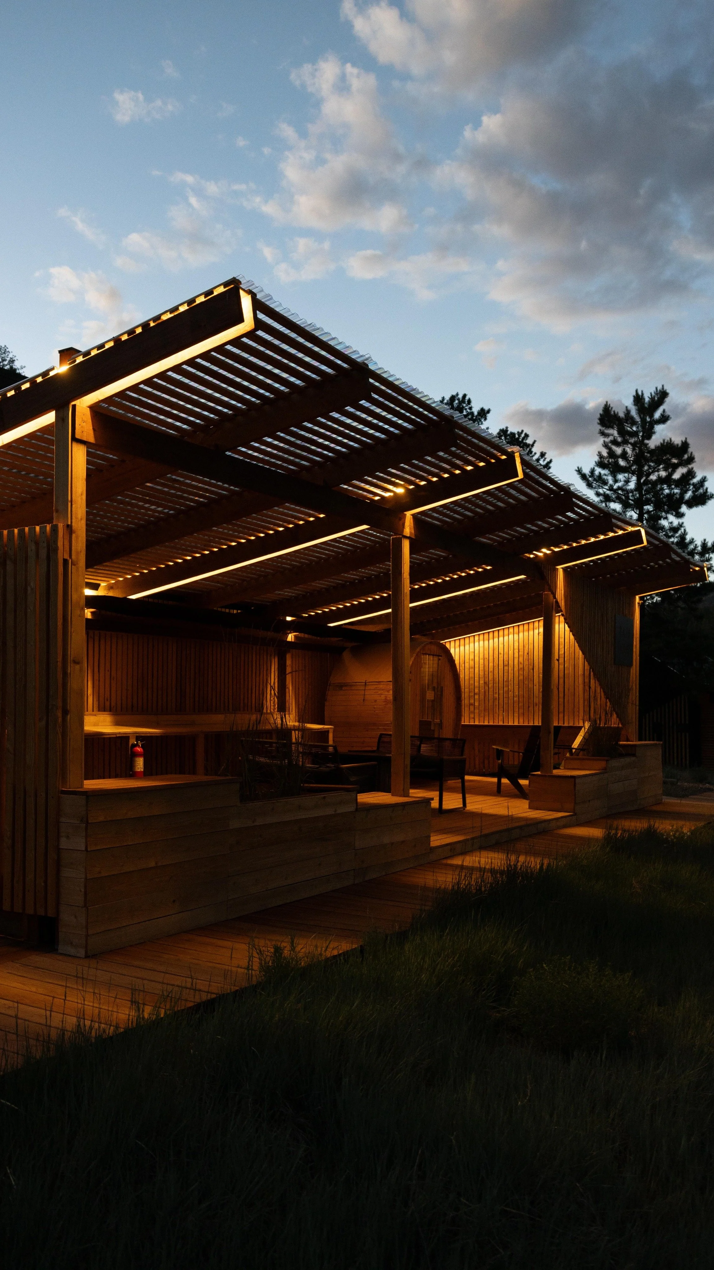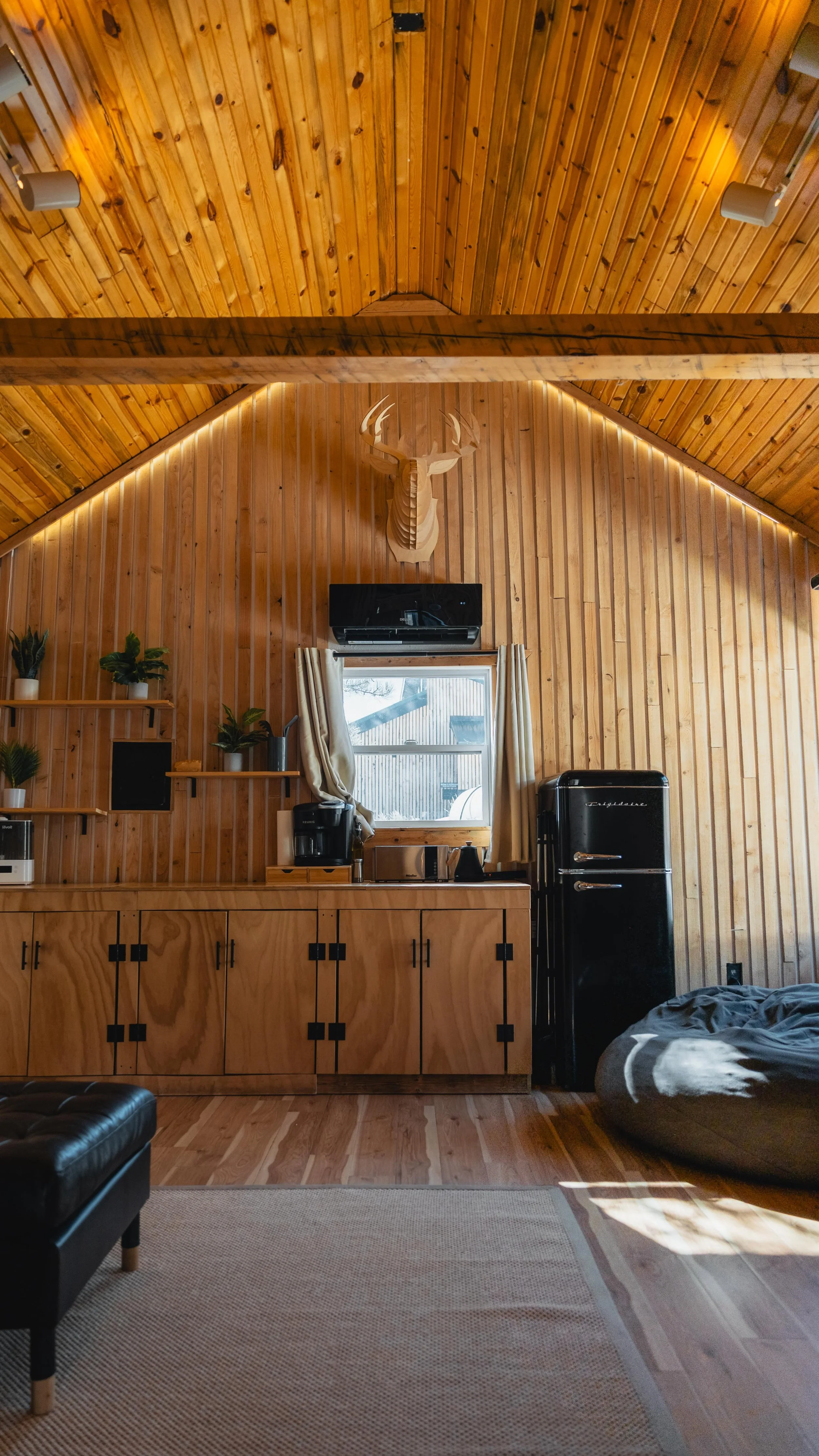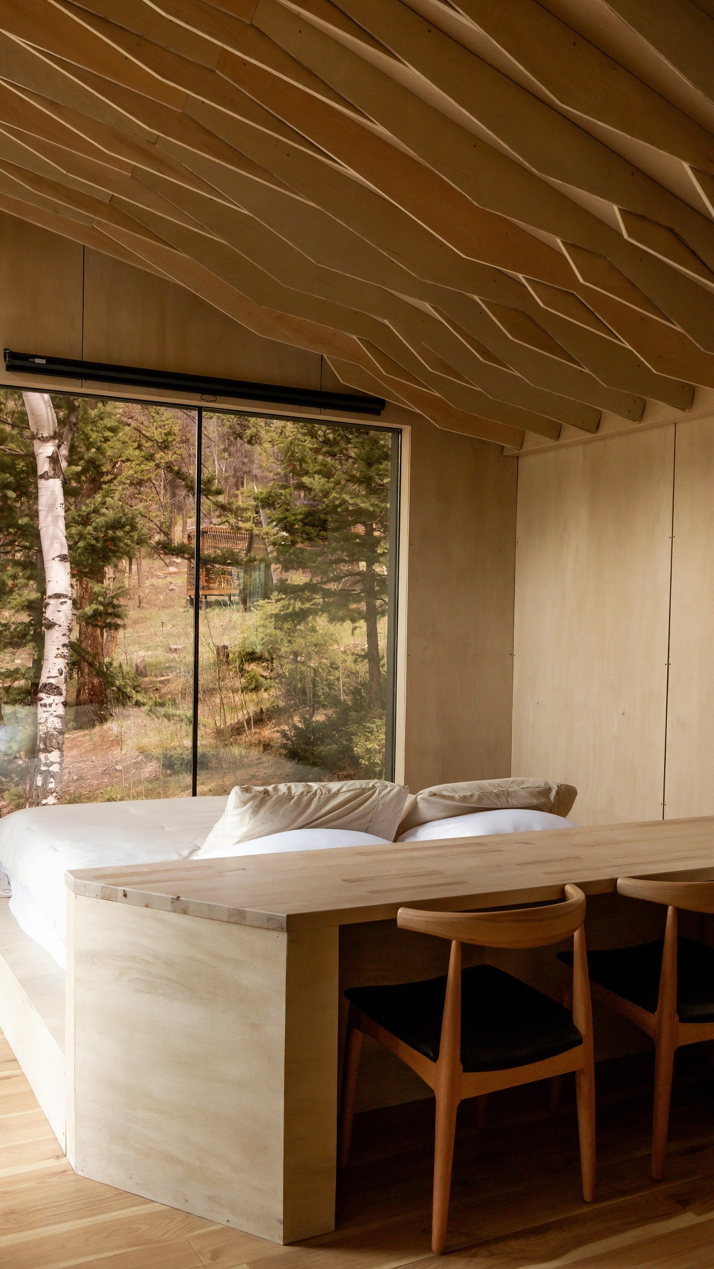 All cabins are custom architecturally designed and built for the space they sit in. In all cabins, we aim to do 3 things to bring the outside in: